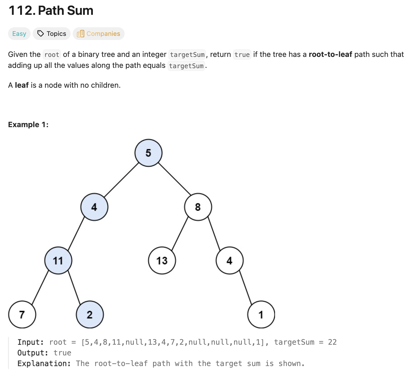 [Leetcode/Tree, DFS, Binary Tree, Recursion] 112. Path Sum 본문